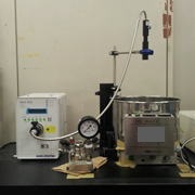 熱水反応の場合、実験はバッチ式のリアクタの中に水や分解対象物、添加剤等を入れ、上の電気炉で加熱して行います。一定時間経過後、リアクタを室温まで冷却し、気相や液相、固相をそれぞれ下の分析機器を使って分析します。